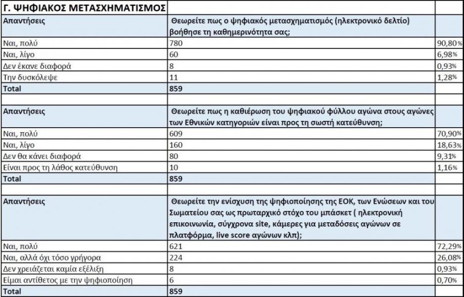 Ακριβώς ίδιο ποσοστό, 98% δηλαδή, απάντησε θετικά στο ερώτημα, «θεωρείτε πως ένας από τους πρωταρχικούς στόχους του μπάσκετ είναι η ενίσχυση της ψηφιοποίησης με ηλεκτρονική επικοινωνία, σύγχρονα site, κάμερες για δωρεάν live μεταδόσεις αγώνων, εφαρμογές live score αγώνων κλπ;».